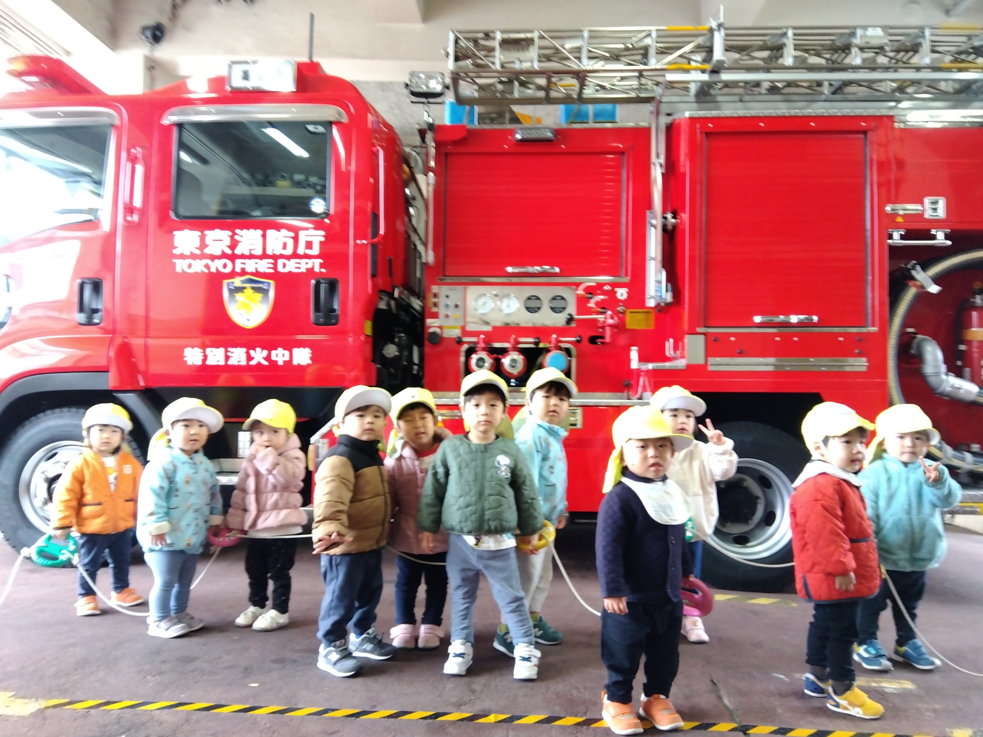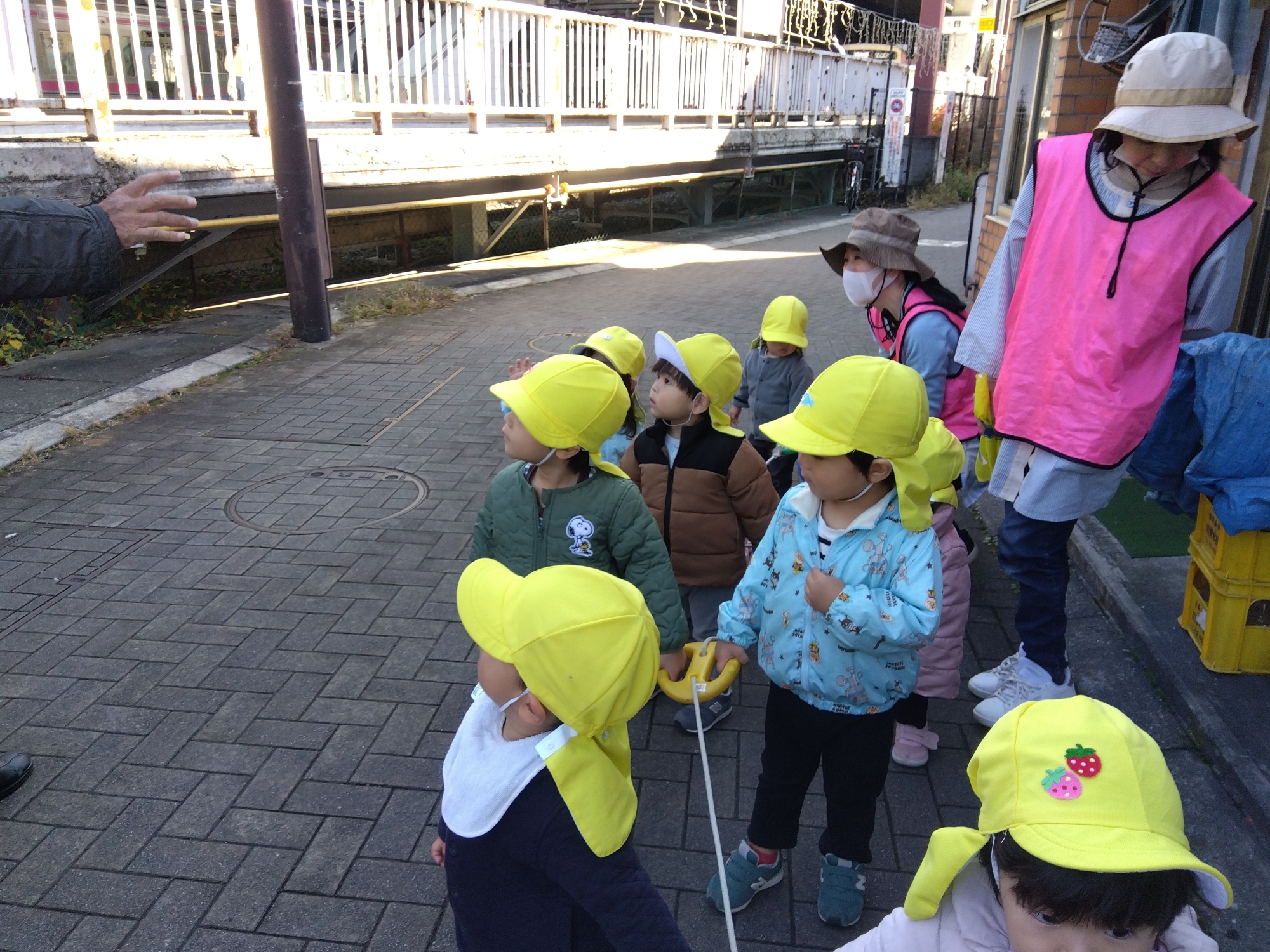 長い距離を歩けるようになり、消防署に消防車を見に行ったり、ねんも公園など少しずつ遠い場所にも行けるようになりました。歩くことが楽しいようで飛行機や、電車を見つけると「あったー!」と見つけては指をさし保育士に知らせてくれる姿が見られます。初めての場所にも興味津々で周りの景色を楽しみながら、自分の足でしっかり歩く姿に成長を感じています。