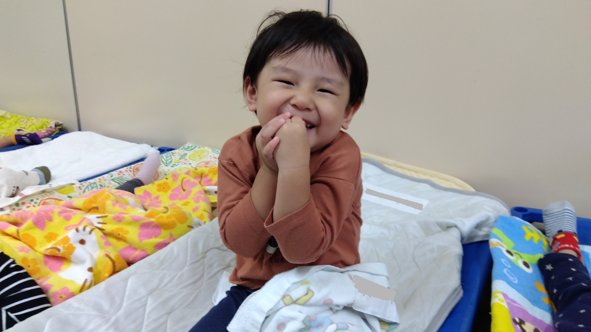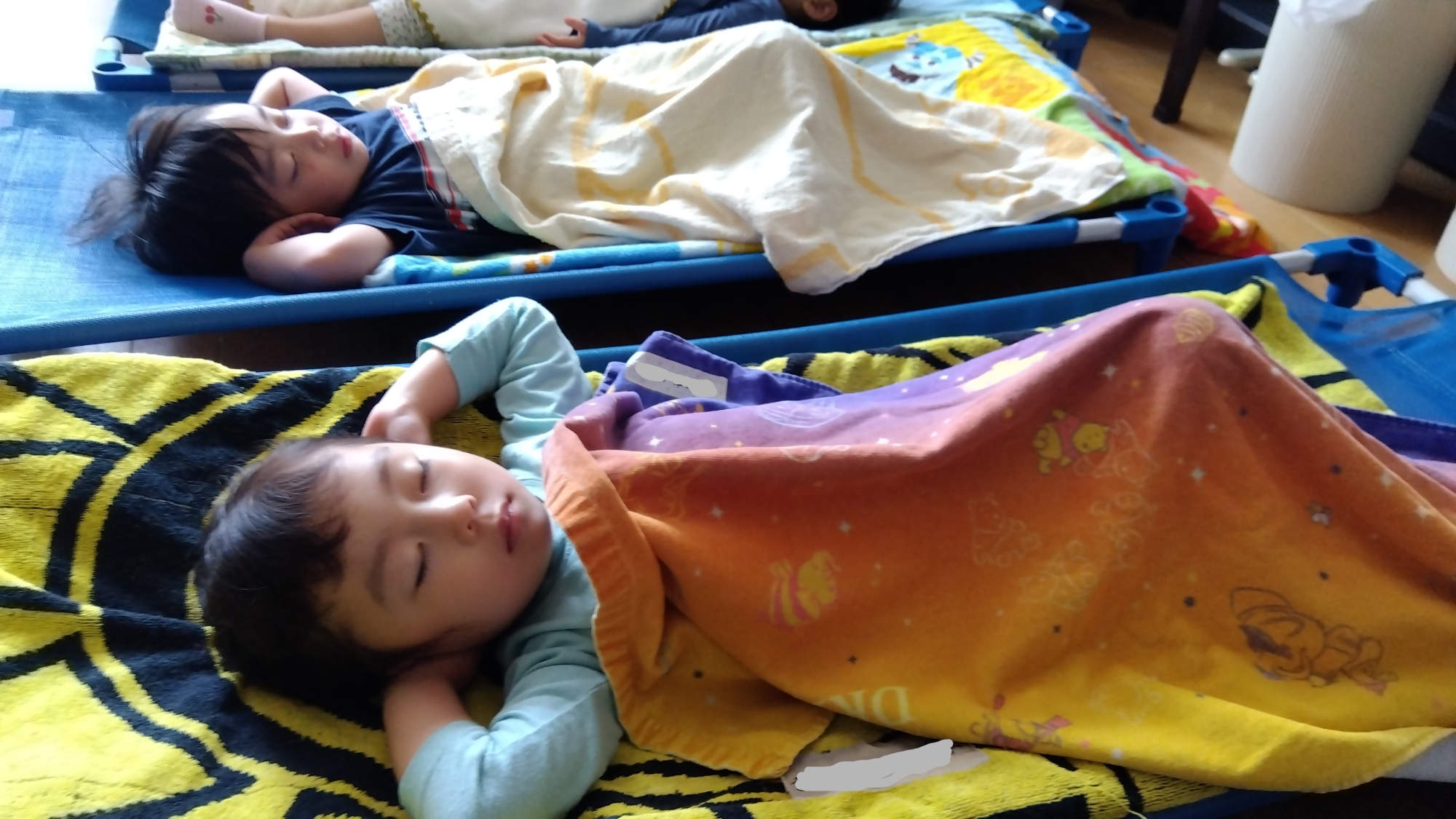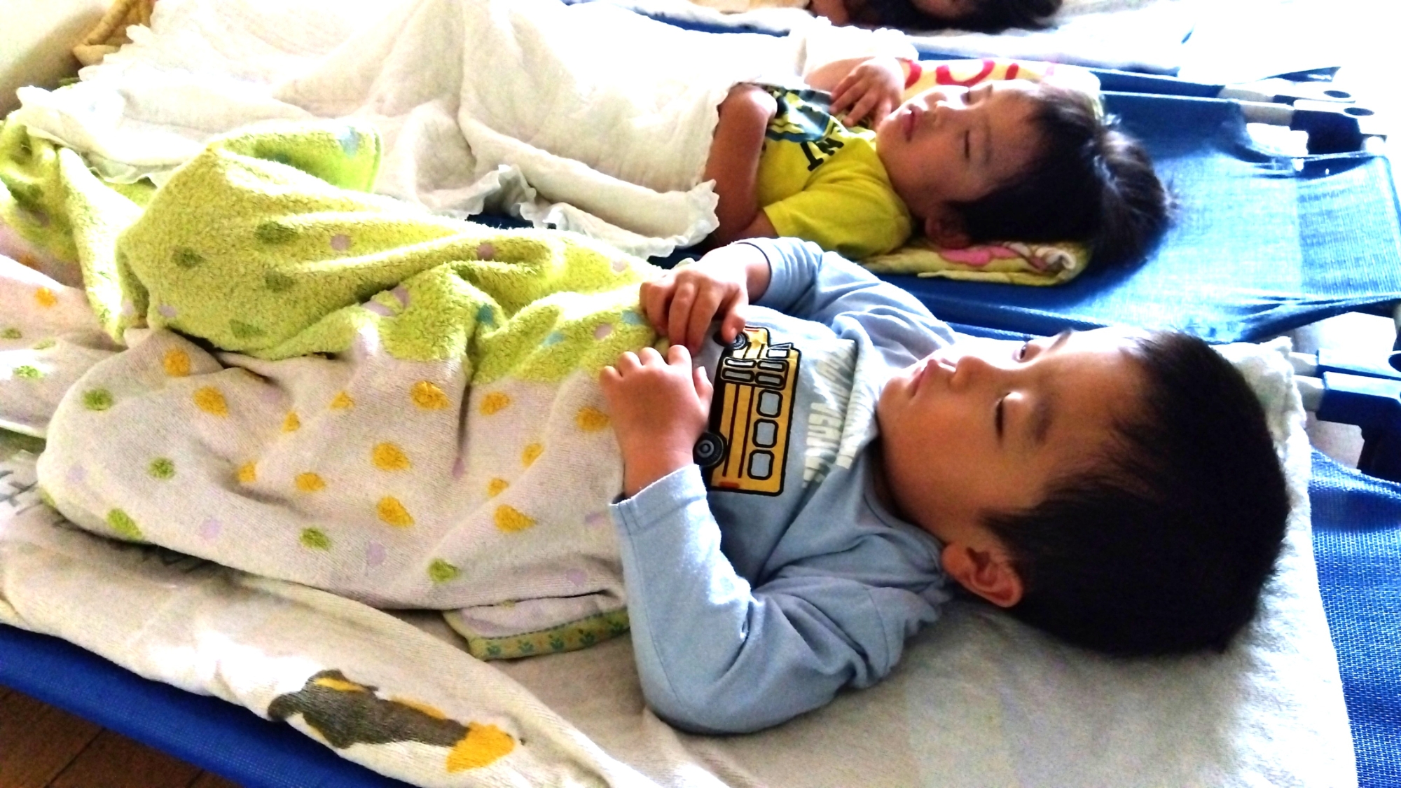 午睡では心も体もリセットし、保育士に声をかけられ、少しずつ目を覚ます子どもたち。午後も楽しく過ごしています。