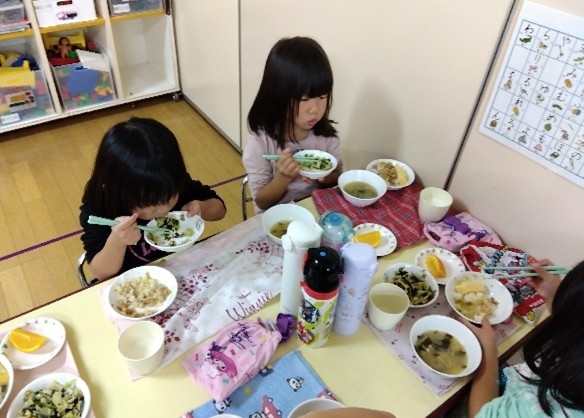 今後は時計を見ながら小学校へ向けて、時間内に食事ができるようにしていきたいと思います。