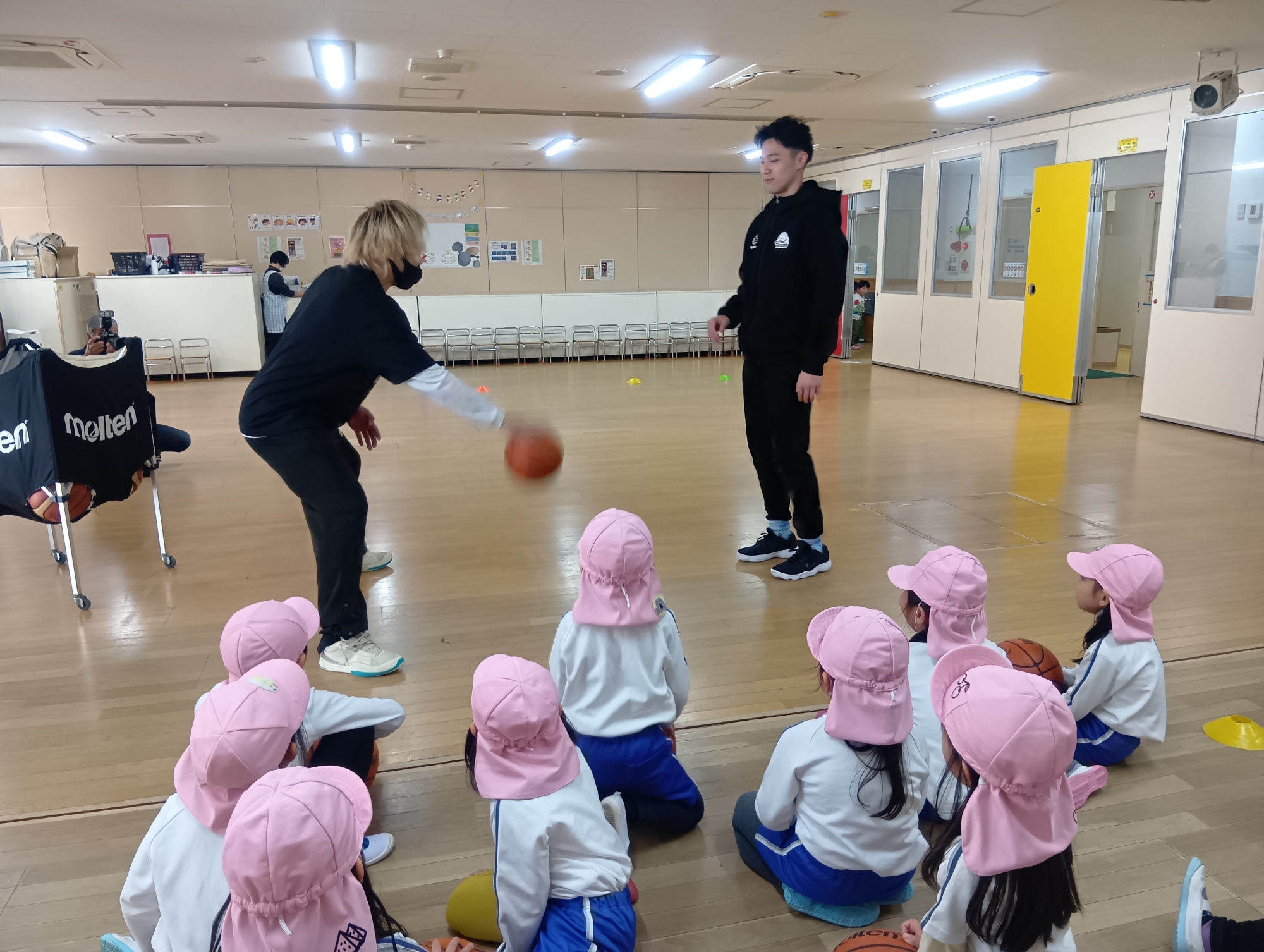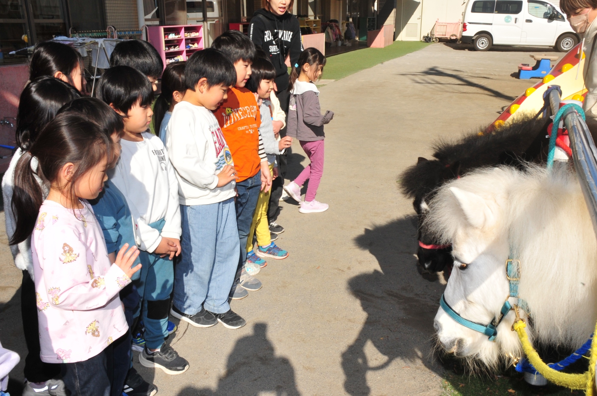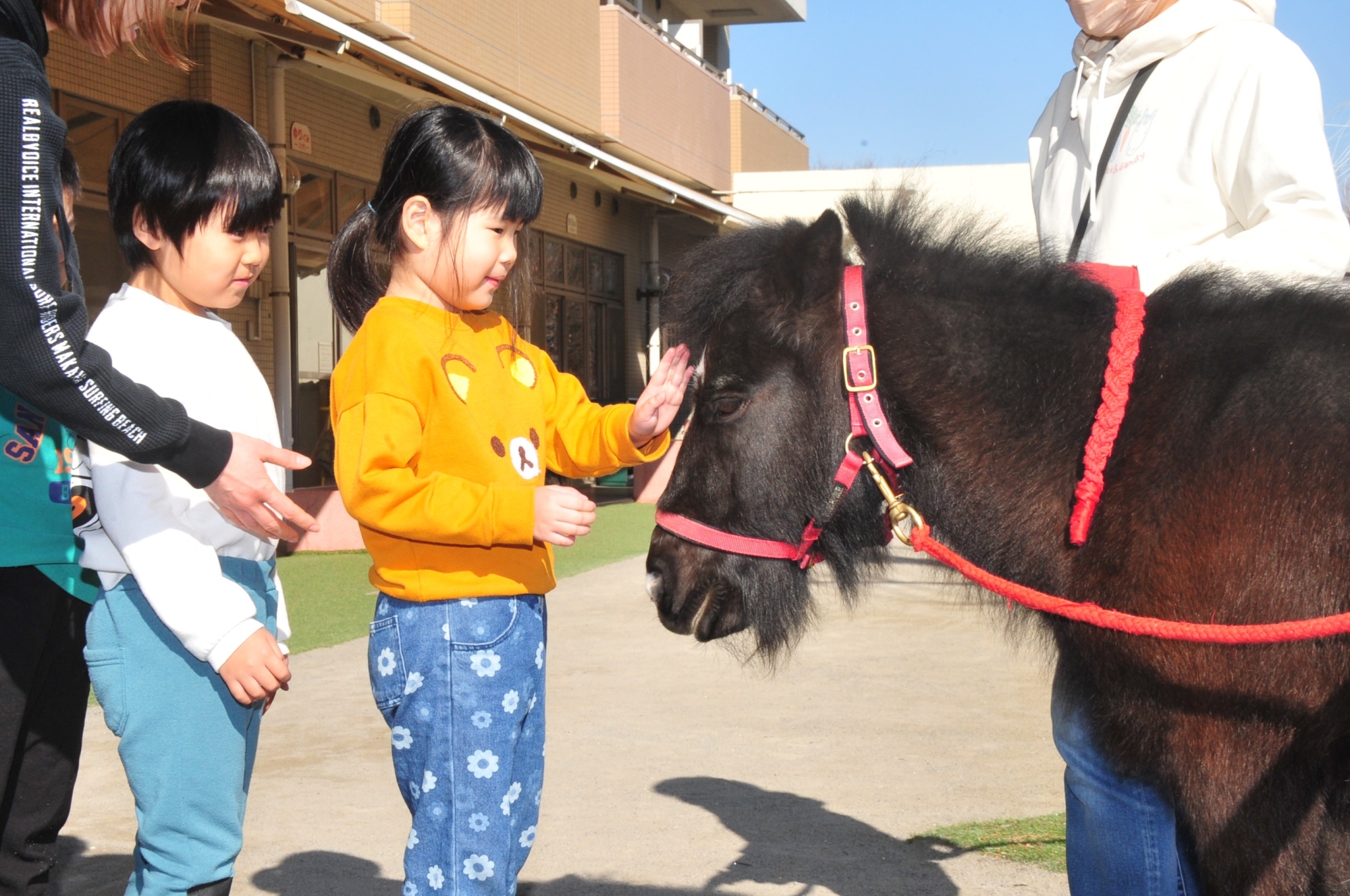 1月は様々な交流イベントがありました。八王子ビートレインズの選手とコーチが来園し、バスケットボールのシュートやドリブルの動きを教えていただいたり、食育の一環として角上魚類に行き、魚についての説明を聞いてきました。また、リトルホースのジャックとダンディが来園し、干し草をあげる等触れ合いも行いました。